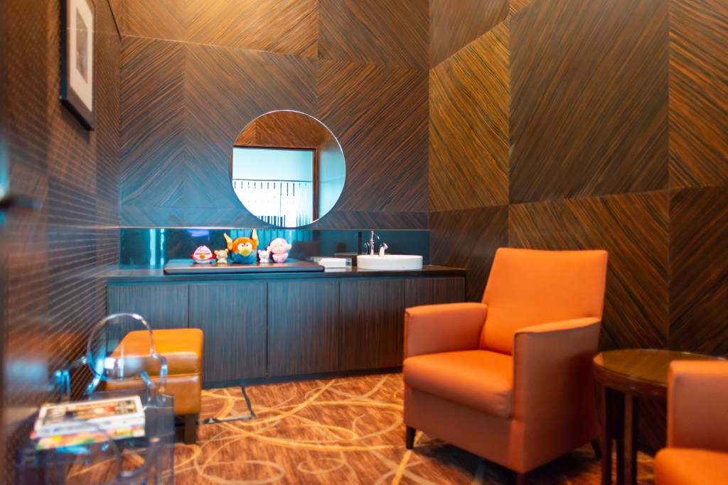 The Private Room 的休憩區設有多張沙發,大部分均為單人沙發,當中部分對著大電視以方便收看新聞或體育節目。貴賓室的盡頭則設有兩間小房可用作供電話間使用,另外亦有一育嬰室及數個電腦工作台。而洗手間內亦設有淋浴間,以及充足的盥洗用品供貴賓使用。