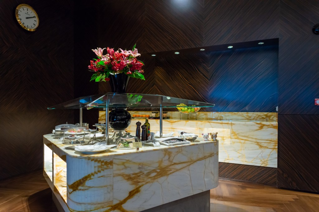 用餐區的一角其實設有小型自助餐桌,提供一些方便小食,例如各式三文治、果仁、朱古力、小蛋糕、生果,唯與主餐牌比較之下並不吸引。