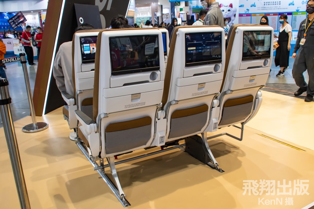 豪華經濟艙及經濟艙的椅背除了機上娛樂系統設有4K高畫質15.6吋及13.3吋螢幕外,也裝設行動裝置架及杯架,旅客可使用個人藍芽無線耳機連接娛樂系統。為增加舒適度,其皮革頭靠可六向調整,上下移動範圍高達6英吋。值得一提,其豪華經濟艙的前後座距高達40吋,並配備腳踏板,為同行中最寬闊的間距。<KenN攝>(按圖可放大)